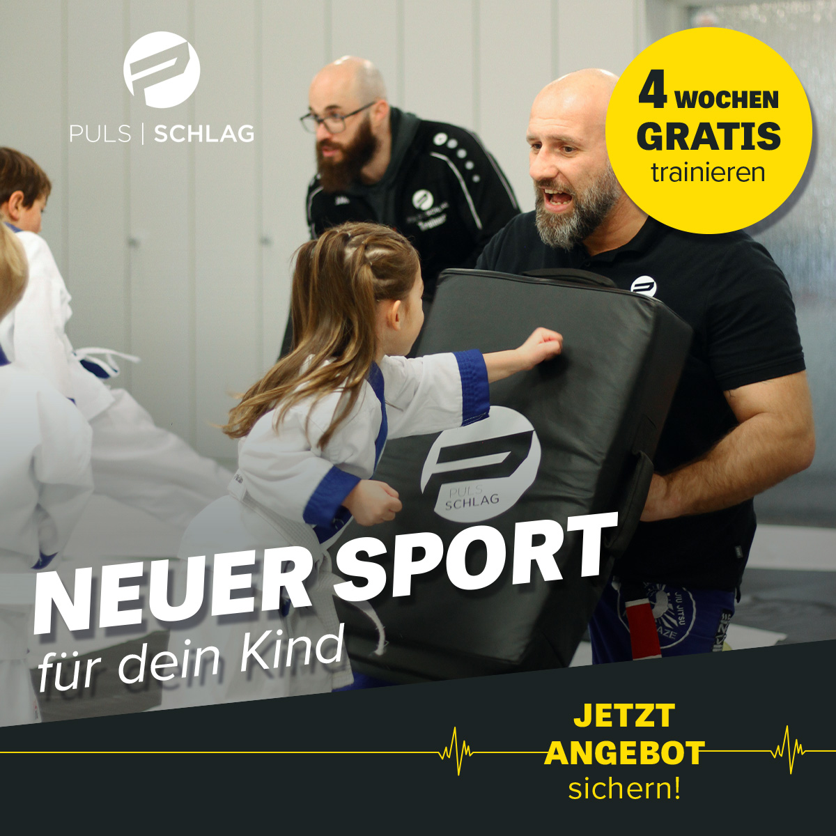 Bei PULS | SCHLAG® in Velbert lernen Kinder und Jugendliche Kampfsport sicher, altersgerecht und mit klaren Werten. Unser Training stärkt Selbstbewusstsein, Konzentration und Körpergefühl – mit Spaß an Bewegung und respektvollem Miteinander.
